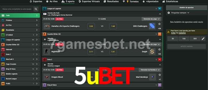 O 5ubet oferece uma grande seleção de opções de apostas em e-sports com probabilidades competitivas